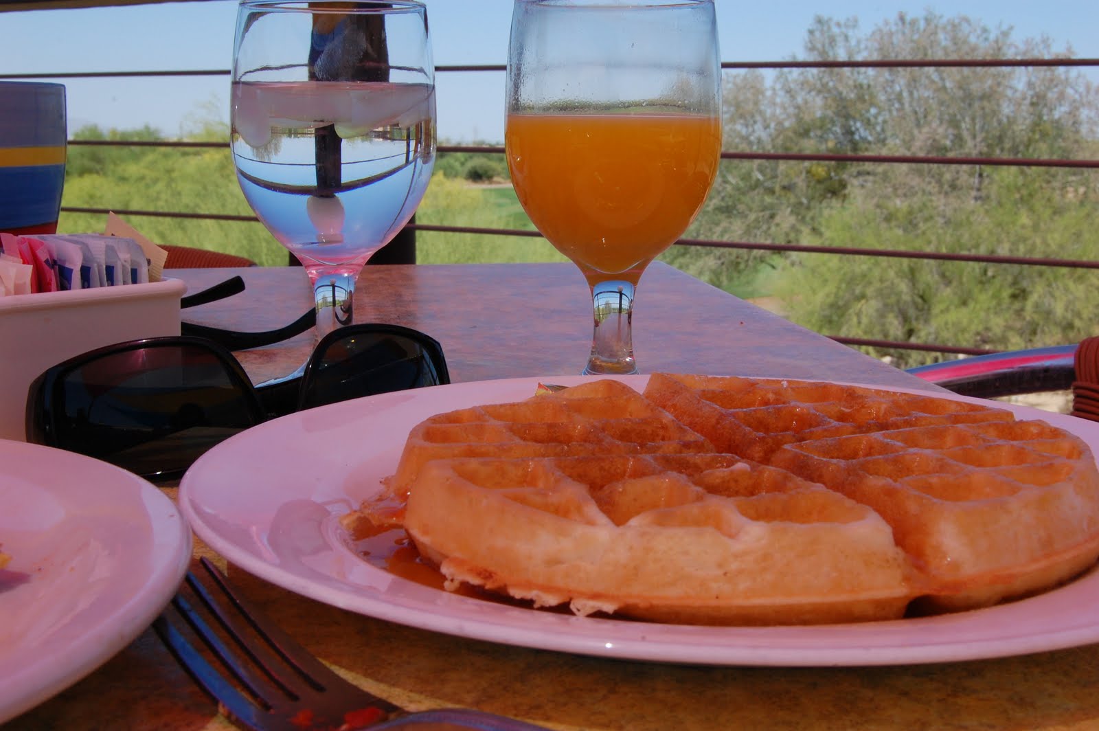 breakfast on the patio in 75 degree winds,
